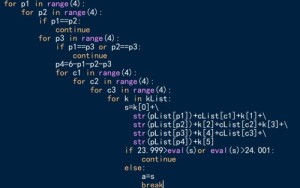 我是使用的python,在做二十四点的程序,希望能实现假如运算出一个结果,便立即跳出循环,但因为循环是多层,所以每跳出一重循环,程序就明白“必须接着跳”。如图