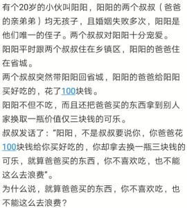 因为100块钱可以买30多瓶可乐。而他只换了一瓶可乐,如果这个人不傻,就是太幼稚,还不理解钱的概念。