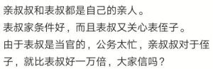 这个没有什么信不信,亲情是无法界定好与坏的,只能看具体的情况而言。亲人之间的关顾可能就不分亲子亲侄,也许你和叔叔接触时间长就受到叔叔的眷顾,可能你和父母相处多些就得到父母的宠爱。既然有缘成为了亲人,珍惜就好,具体问题一定会得到实际的解决,不必多虑。所以,当官、公务忙,和亲情的显示没太大关系。