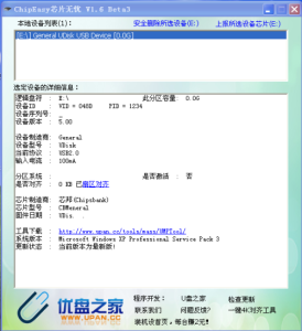 应该是USB存储设备存在损坏导致的,看软件中展示的信息,该U盘没有显示存储空间信息,只能考虑找一个匹配的量产软件,对U盘尝试进行量产操作,看能否修复。