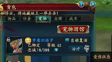 QQ仙侠传宠物受伤状态点治疗为什么没反应?