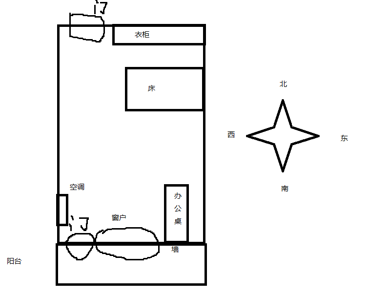 目前是 办公桌在卧室西南方,对着墙,右后是窗,左后对着门