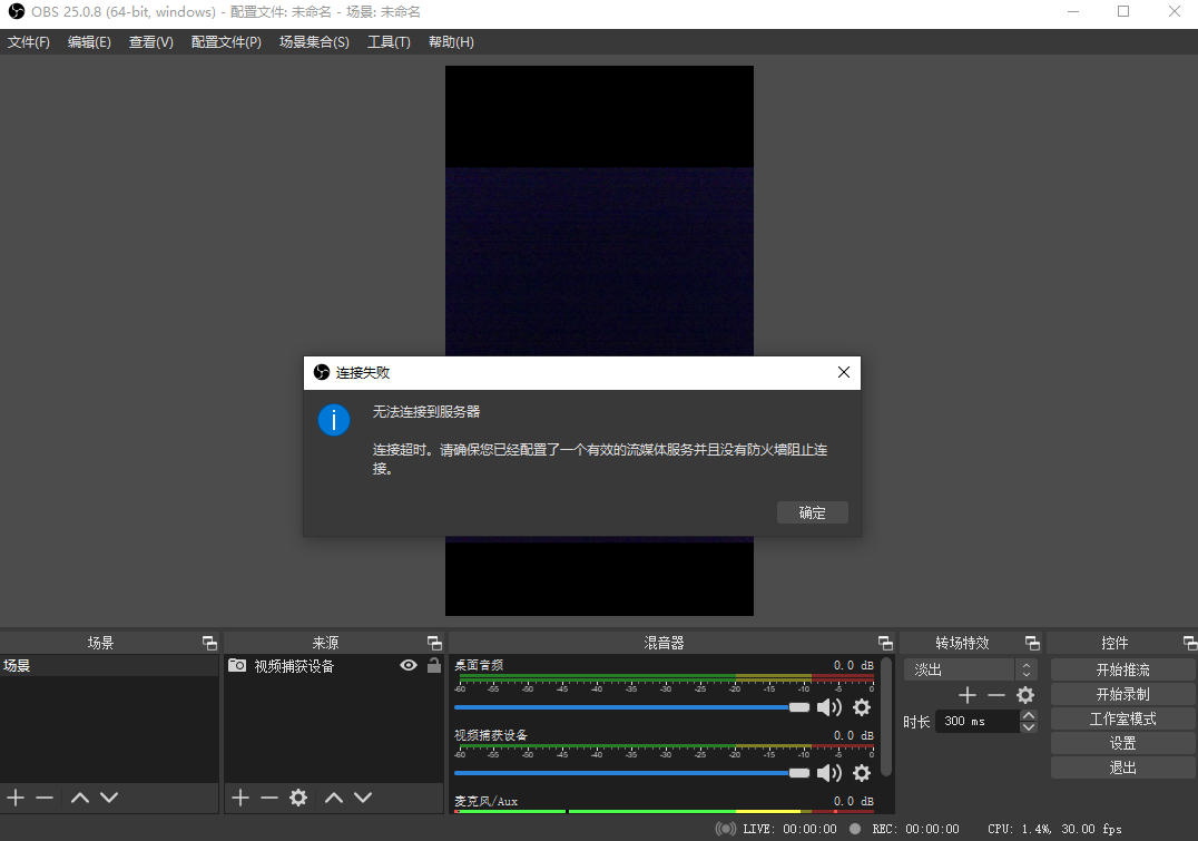 OBS直播 连接失败连接超时,请确保您已配置有效的流媒体服务并且没有被防火墙阻止